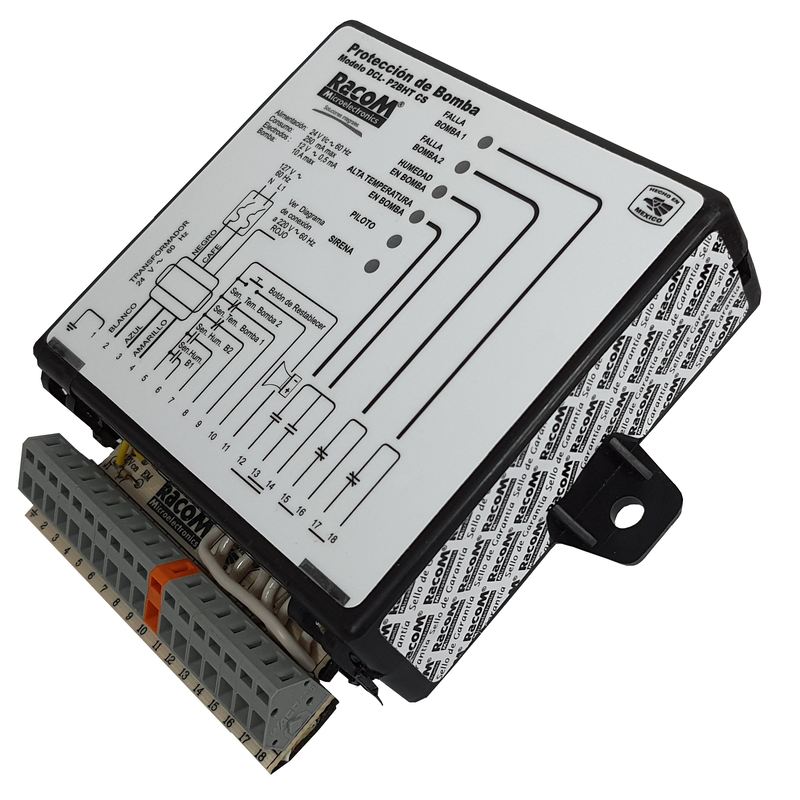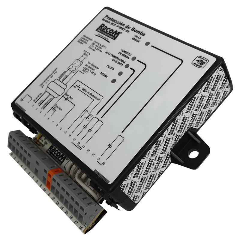 Este equipo tiene la función de detener la operación de cualquiera de las bombas cuando recibe una señal de humedad o temperatura. El equipo cuenta con dos relevadores, los cuales son normalmente cerrados y se abrirá cuando se presente una falla dependiendo la bomba que reporte será la que se detenga. Cuenta con un par de relevadores los cuales comenzaran una secuencia de apertura y cierre cuando se presente alguna de las dos fallas en cualquiera de las bombas, estos pueden utilizarse para conectar lámparas de alerta visual. Para la alarma auditiva, el equipo cuenta con una salida de 12 Vcd para conexión de un buzzer.