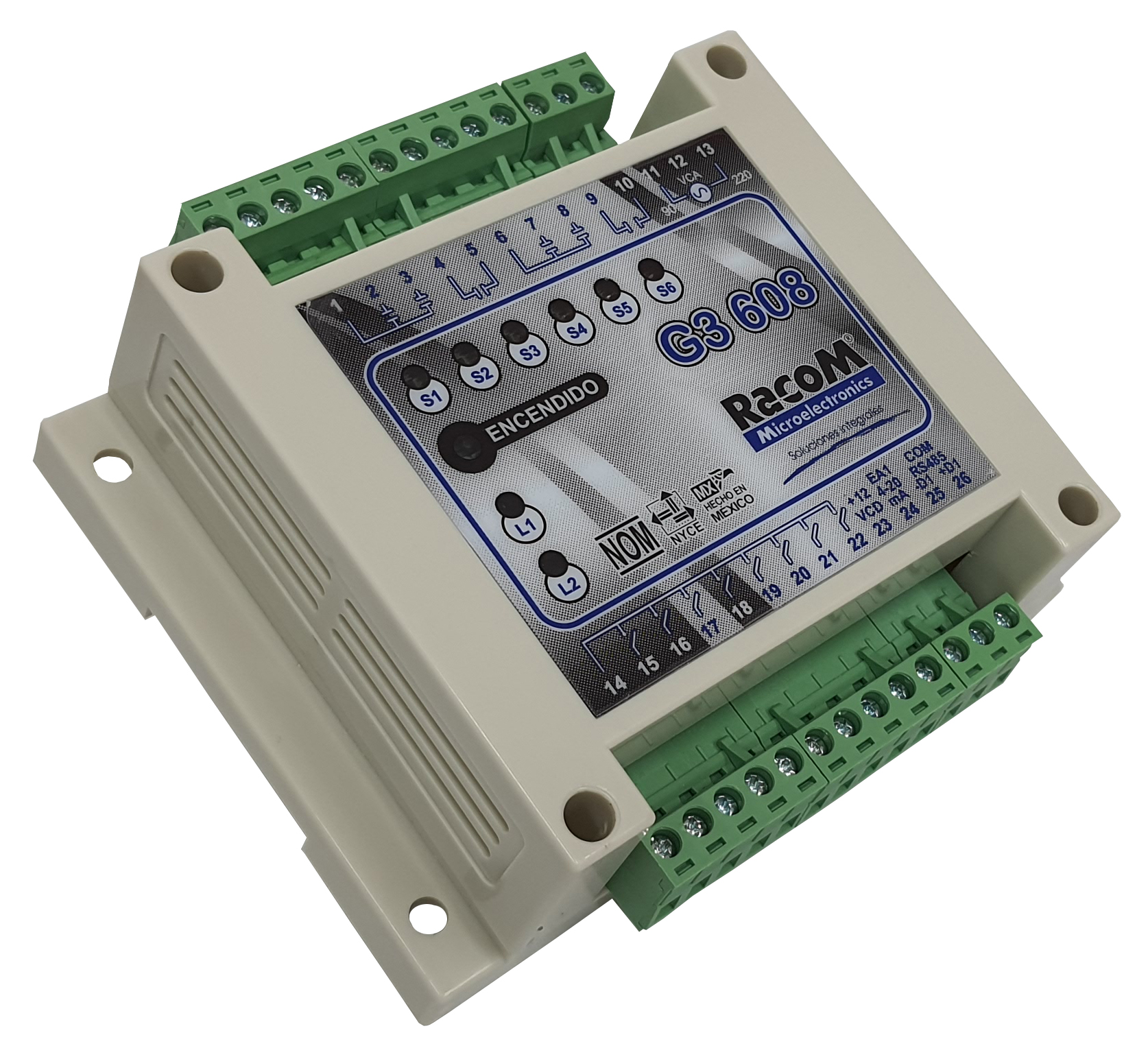 La plataforma DLC G3-608 es un equipo para aplicaciones industriales el cual cuenta con 8 entradas digitales y 6 salidas de relevador, su versatilidad permite que se pueda utilizar en diferentes aplicaciones (solicitud de aplicación en la compra del equipo). Esta plataforma se utiliza para el control de múltiples bombas y se puede encontrar en diferentes aplicaciones como son: