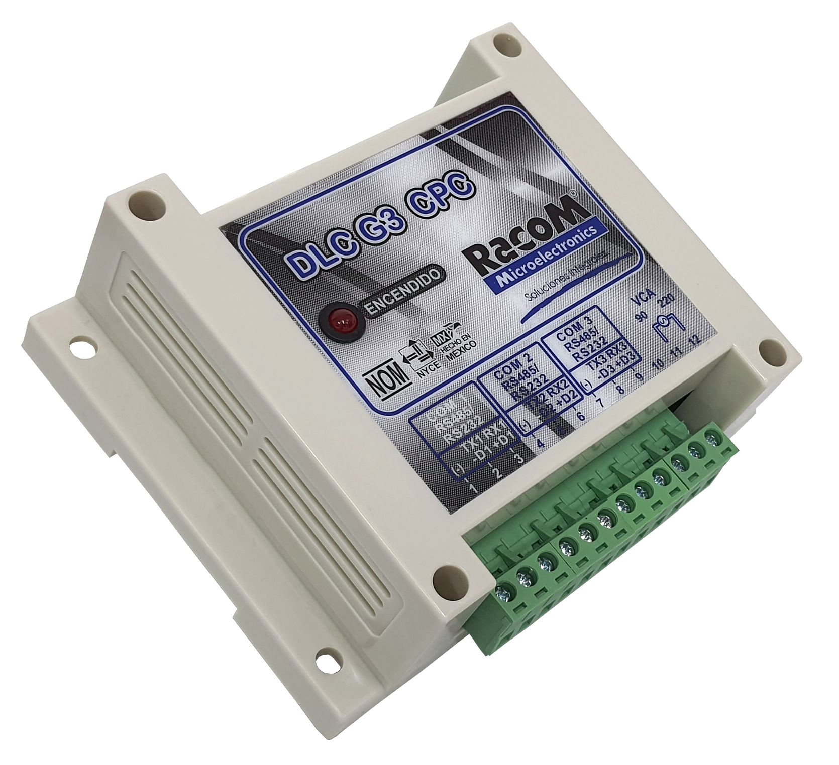Este equipo tiene la función de interconectar 3 equipos RACOM, por medio de un bus de comunicación MODBUS RTU RS485. PCP es un concentrador de dispositivos Modbus RACOM, su principal función es la de obtener información y entregarla en alguno de los dispositivos que se encuentran en la red MODBUS RS485 RTU. Este equipo puede pertenecer a una red MODBUS como dispositivo maestro y esclavo. Y si es necesario ejecutar alguna rutina de control comandando expansiones (DLC G3-608) debido a que no cuenta con entradas y salidas. Especificaciones técnicas: