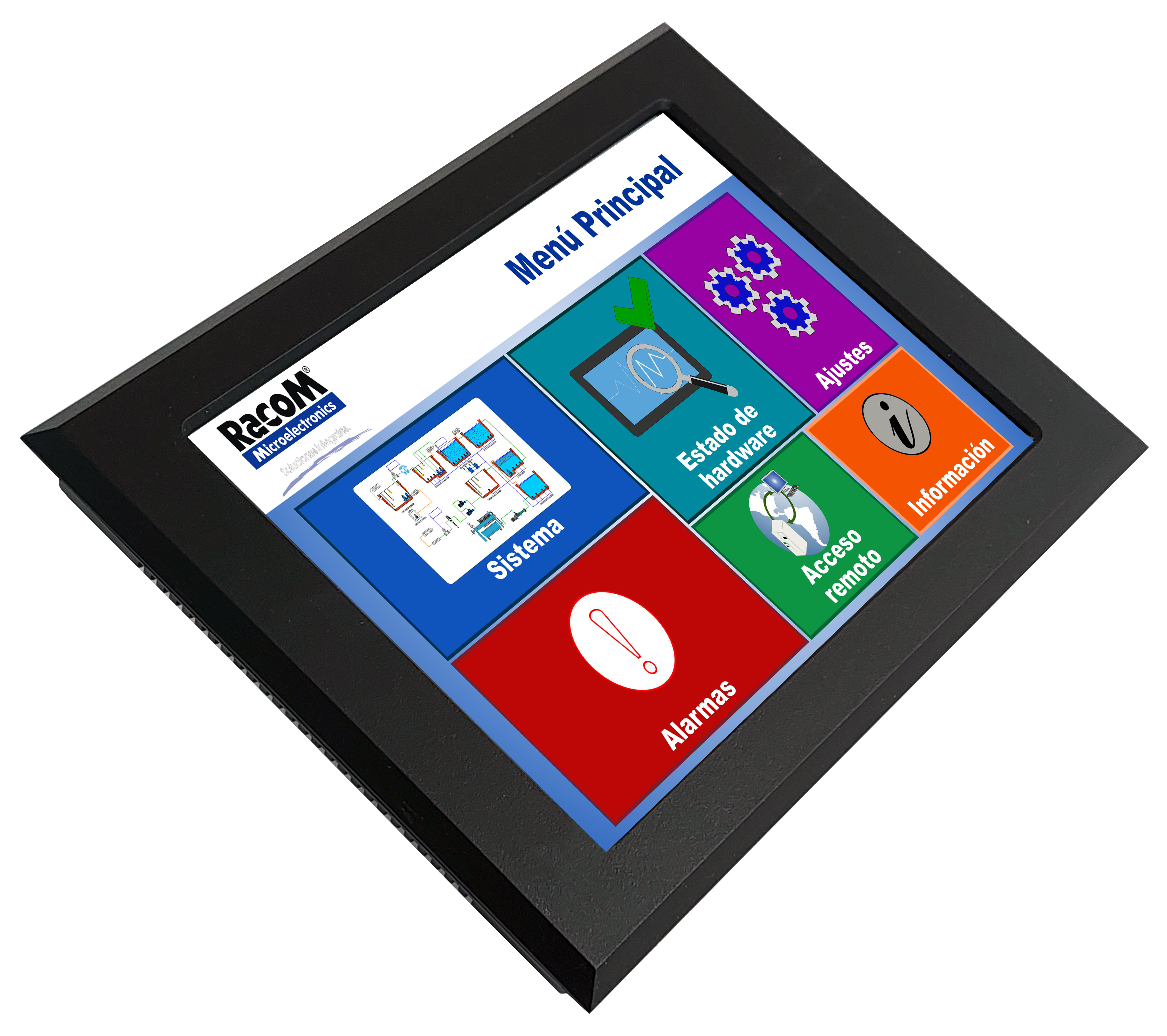 Se dispone de conexión a pantalla táctil RACOM, dependiendo de la aplicación. La pantalla táctil contiene parámetros configurables en español y monitoreo del sistema de manera gráfica.